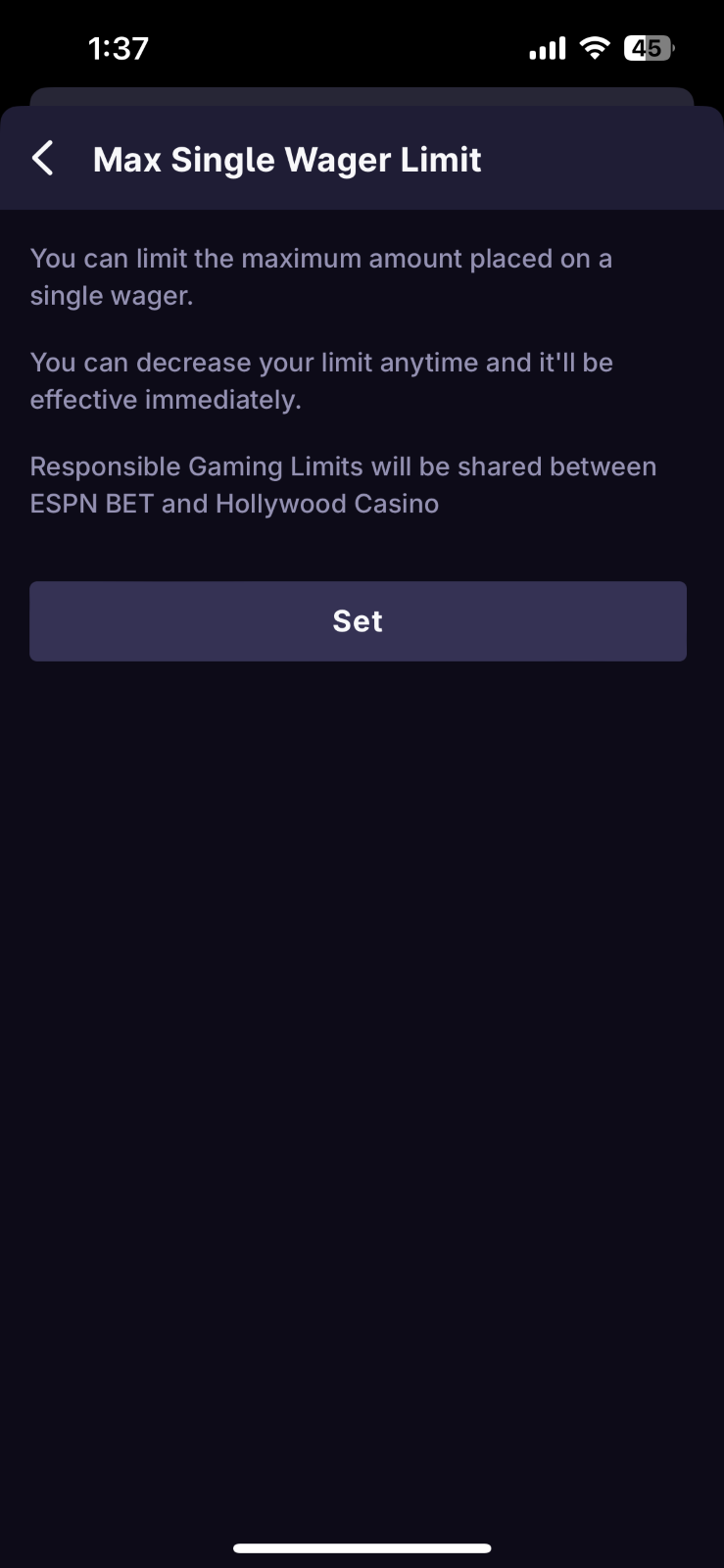 Max Single Wager Limit - You can set a limit on the maximum amount you can stake on a single wager.
